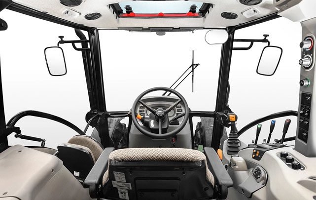 O Farmall M ActiveDrive 4 se destaca com seus recursos únicos, como sua cabine espaçosa, com ar-condicionado, alavancas de controle ergonômico, assento com suspensão a ar e teto solar.